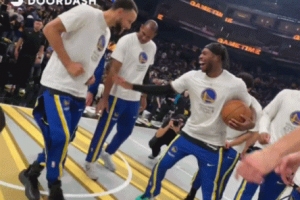 回主场真开心!勇士众将赛前围圈 库里在中央热舞引得众人大笑