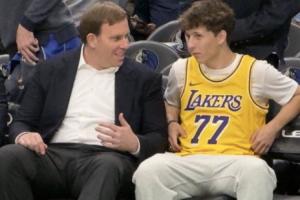 看着不心痛吗!独行侠老板与身穿东契奇湖人球衣的球迷交谈
