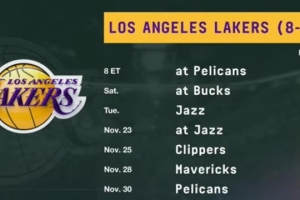 未来7场对手分别是:鹈鹕、雄鹿、爵士、爵士、快船、独行侠、鹈鹕